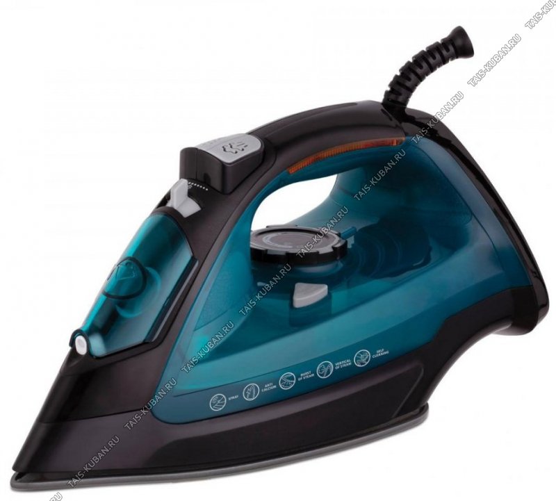 Утюг керамическая подошва 2400Вт вертикальное отпаривание, резервуар для воды 0,3л, функция пароувлажнения, функция самоочистки, сухой/паровой режим глажения, антикапля, автооключение, цвет синий/черный (10)