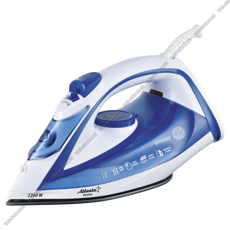 Утюг керамическая подошва 2200Вт вертикальное отпаривание, цвет белый/синий(10)