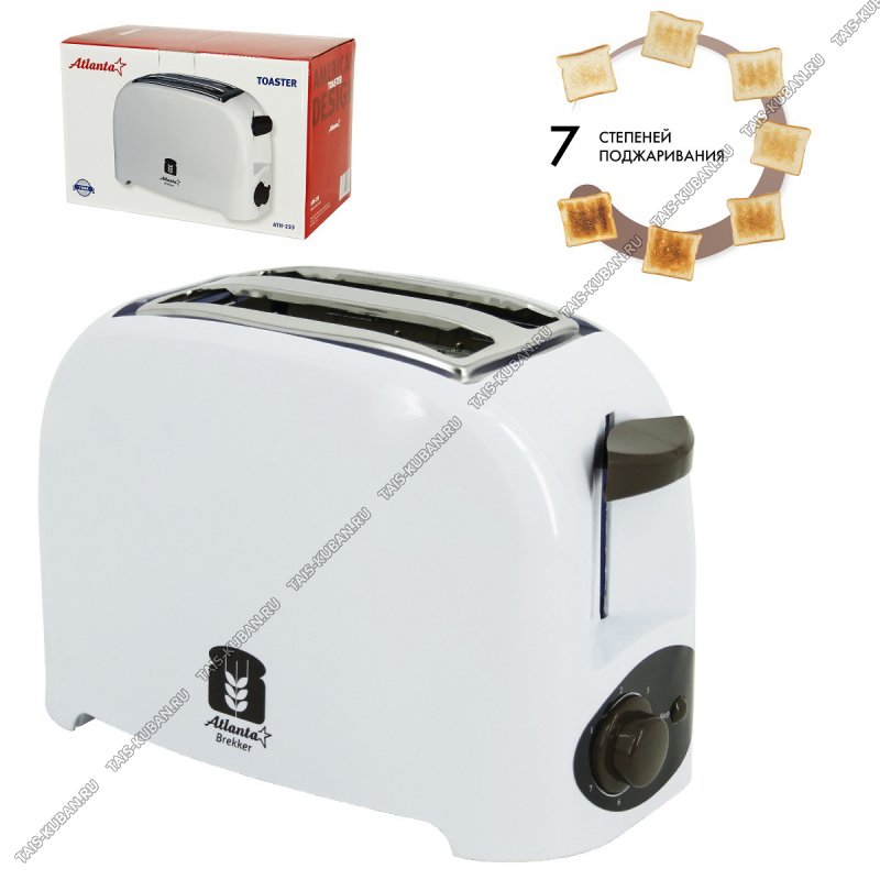 2 ломтика, металлический корпус, регулировка времени, автоотключение, поддон для крошек, защита от перегрева, цвет белый/коричневый (6)