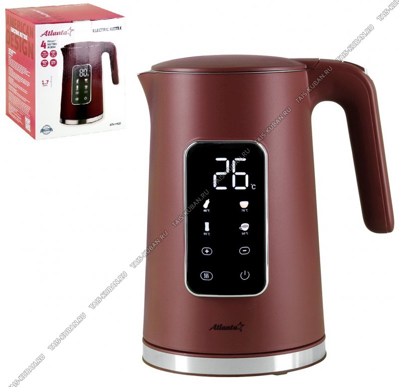 Чайник нерж. 1,7л 2200Вт диск,2-ая стенка,LED дисп,сесор.управ,регул.t,поддерж.t, автооткл,защ.б/воды, бордо(8)
