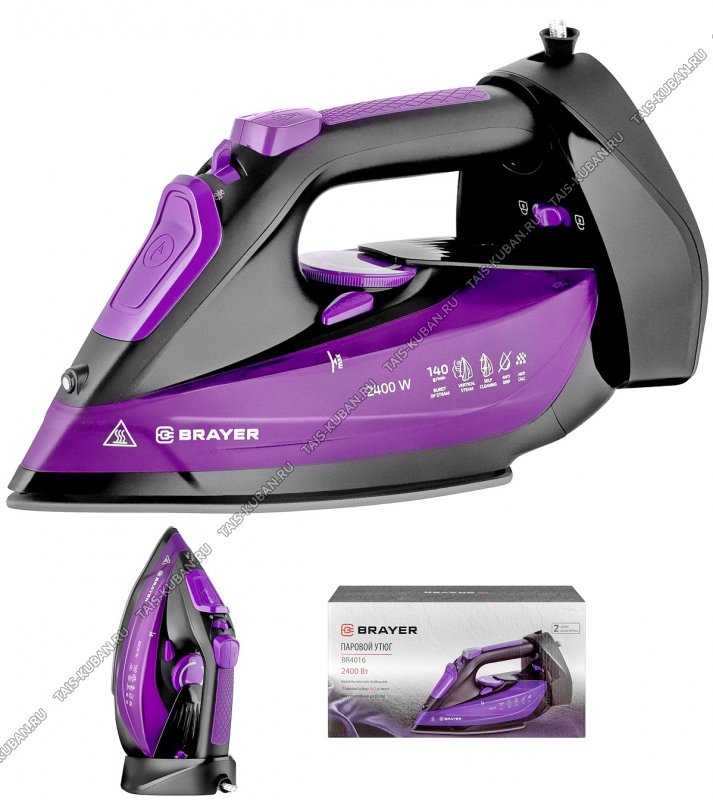 Утюг керам.подошв,на подставке 2400Вт 2реж.работы,черн/фиол. (6)