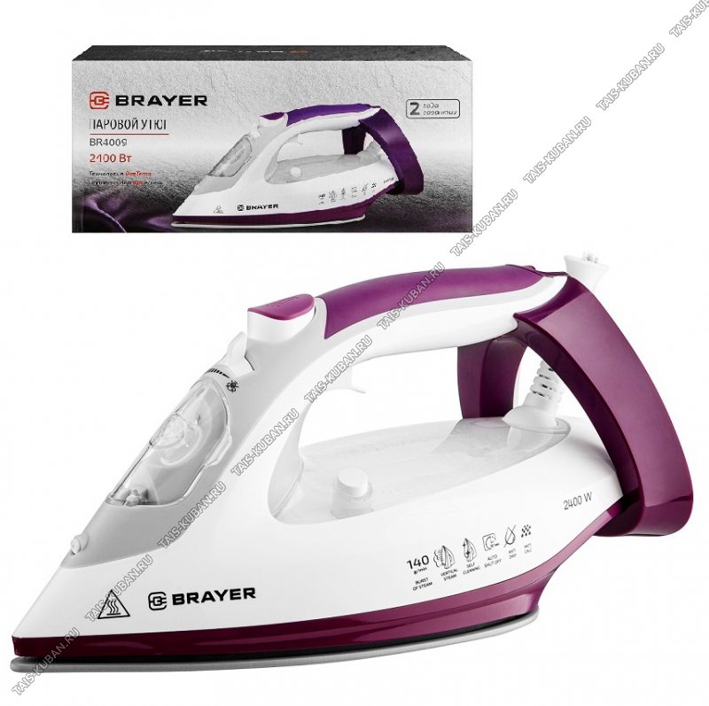 Утюг керам.подошв,на подстав 2400Вт пар 140г/вода 280мл,верт.отпар,антикапля,разбрызг,самоочист, белый/фиолетовый(6)