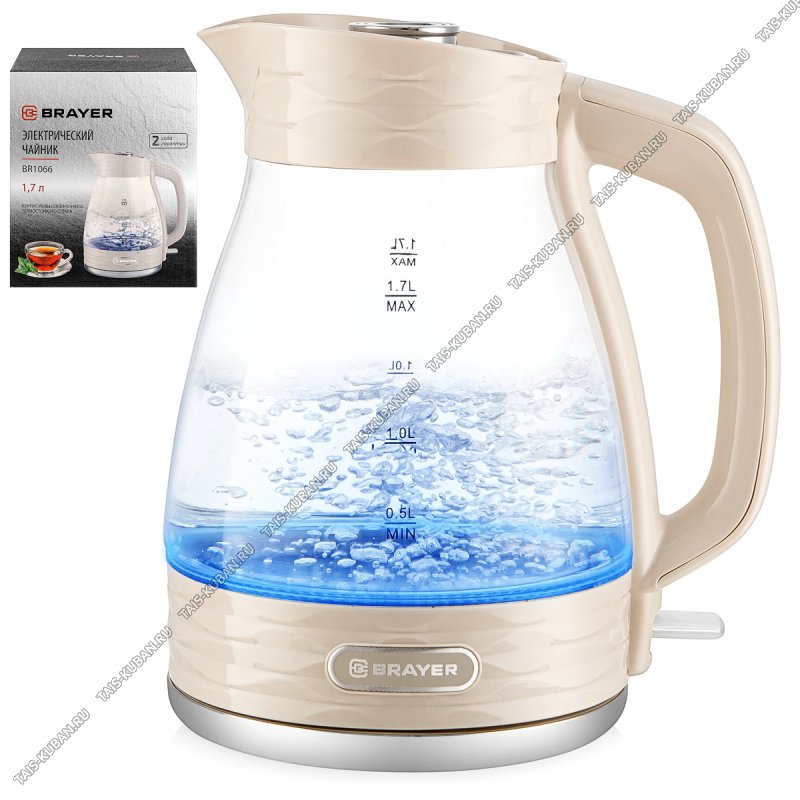 Чайник стекло 1,7л 2200Вт, бежев (6)