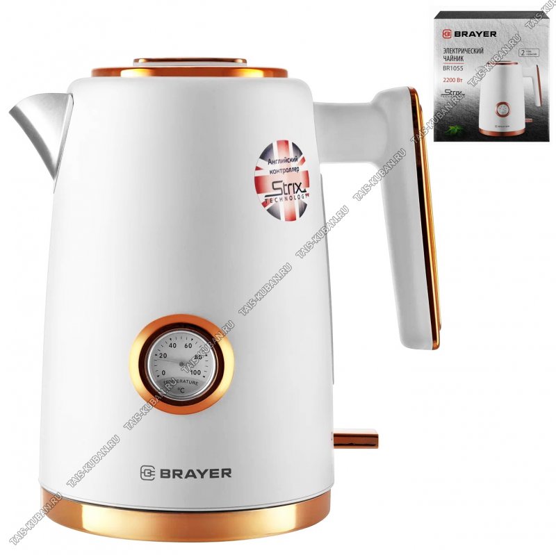 Чайник из нержавеющей стали 1,7л 2200Вт диск, белый/бронза (8)