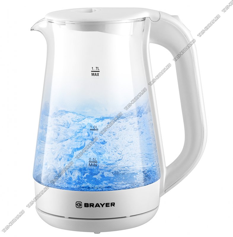 Чайник стекло 1,7л 2200Вт диск,подсвет,белый (2)