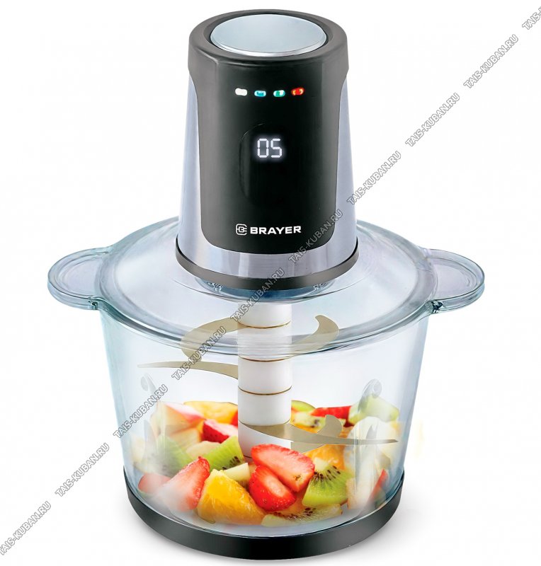 Измельчитель 800Вт 4скорости, стеклянная чаша 3л, 6 нержавеющих лезвий, LED-дисплей, корпус пластик+нержавейка, антивибрационный коврик, лопатка в комлекте, чёрный/серебро