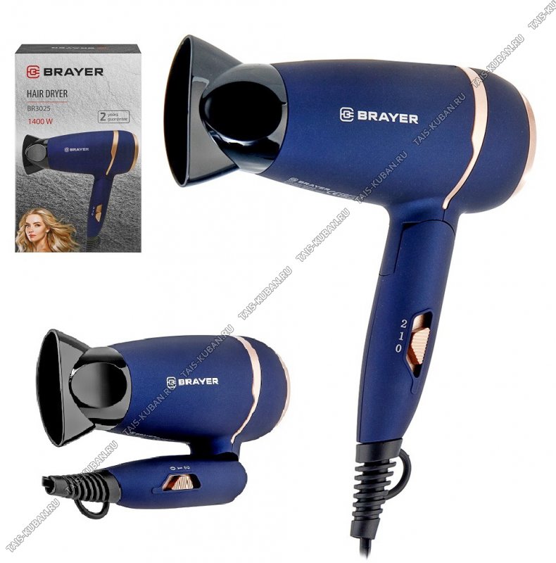 Мощность 1400 Вт2 скорости воздушного потокаСкладная ручкаПрорезиненное покрытие soft-touchCъемный фильтрПетелька для подвешивания