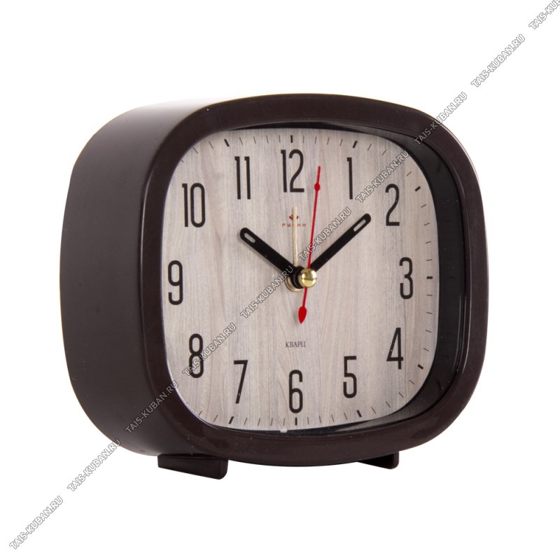 Будильник прямоуг. 12х10см "Эко стиль/корич" пластик, п/у (40)