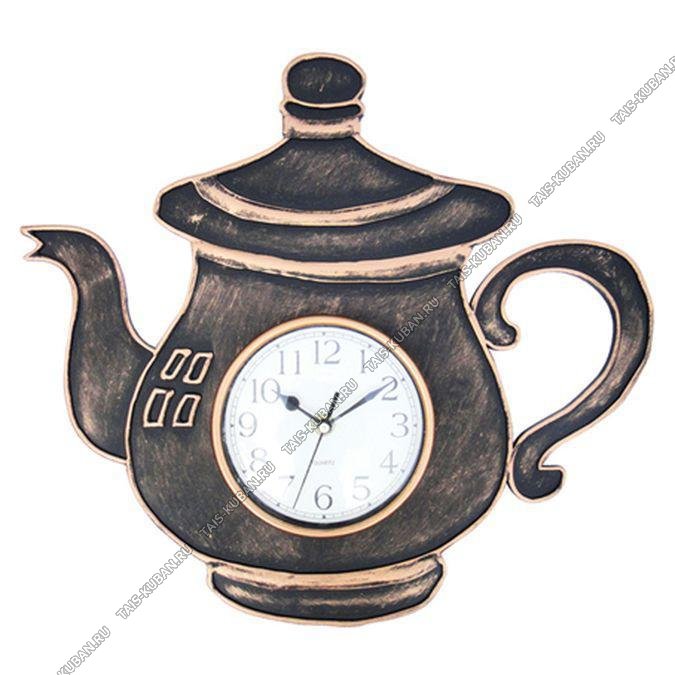 Часы (пластик) фигурн.(34х38см) Часы (пластик) фигурн.(34х38см) "Кофейник" бронза,п/у (10)