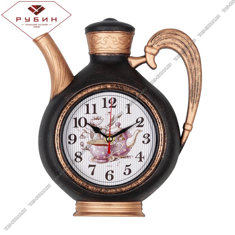 Часы (пластик) фигурные (27х24см) Часы (пластик) фигурные (27х24см) "Чайник" черный/медь
