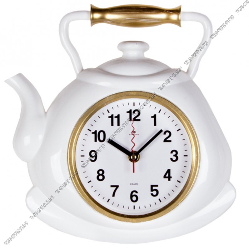 Часы (пластик+стекло) фигурные (27х28см) "Чайник"