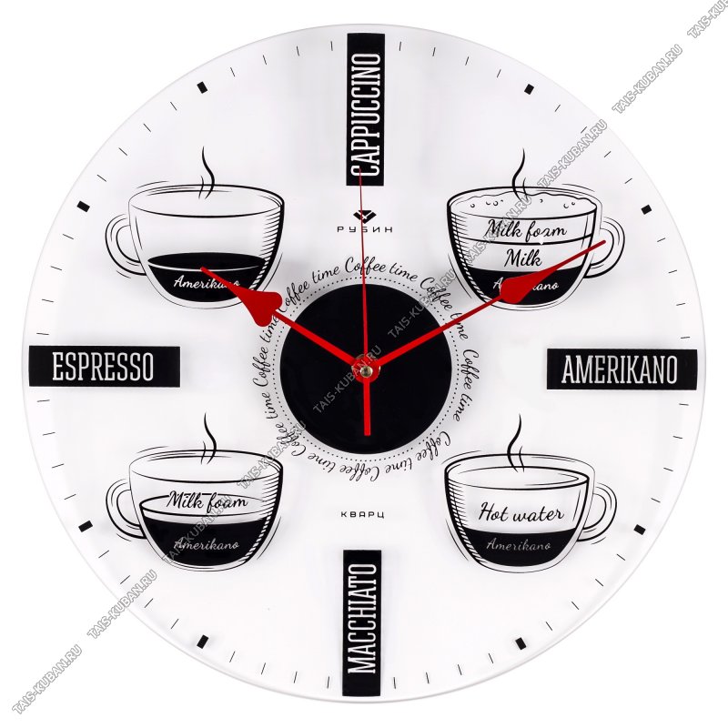 Часы (стекло) кругл.d35см Часы (стекло) кругл.d35см "Coffee time" прозрач/черные п/у (10)