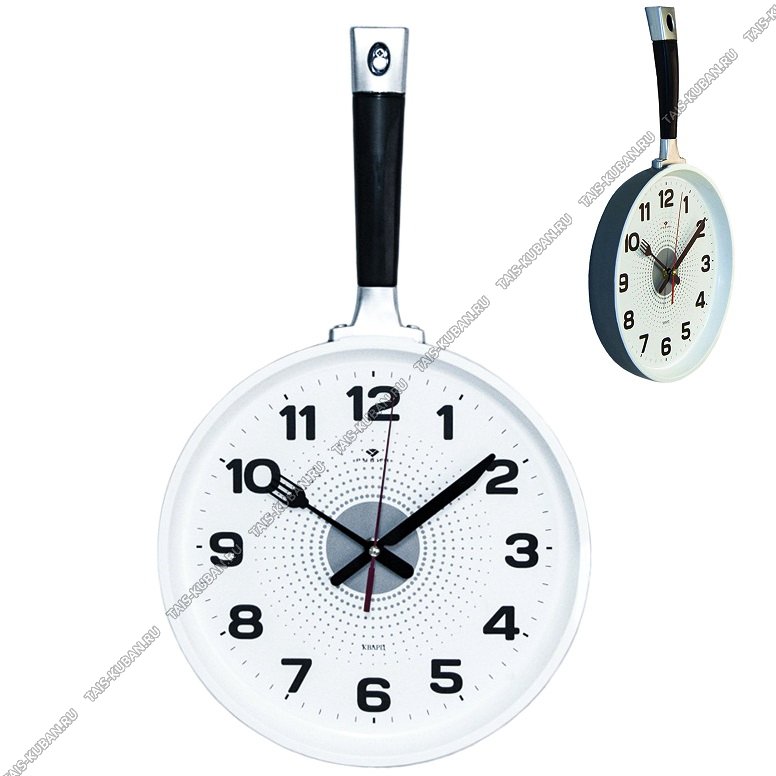Часы (пластик) (25х43см) "Сковородка/Белая" (10)
