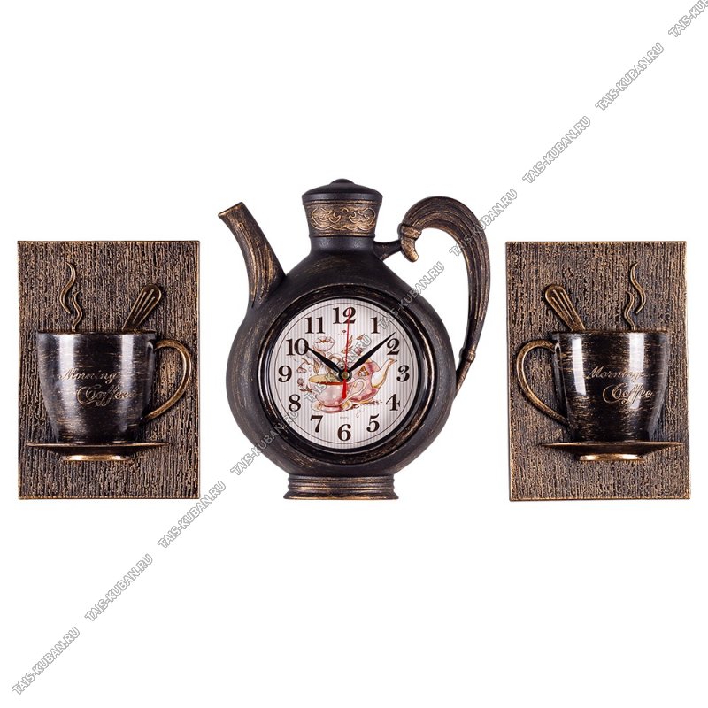 Часы (пластик) фигурн.(34х38см) Часы (пластик) фигурн.(34х38см) "Кофейник" бронза,п/у (10)