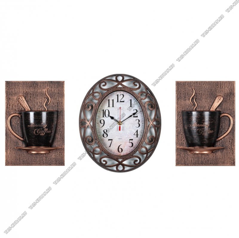 Часы (пластик) 3 секции (53х31см) Часы (пластик) 3 секции (53х31см) "Мадлен и чашки" под бронзу