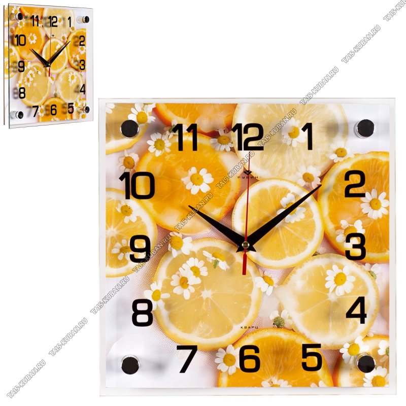 Часы (стекло/ДВП) (25х25см) "Лимоны" (10)