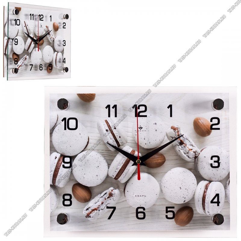 Часы (ДВП/стекло) (25х20см) "Мраморные макаруны" (10) коробка крафт, ТМ Рубин