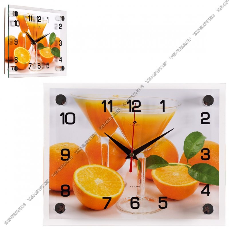 Часы (стекло/ДВП) (25х20см) "Апельсиновый сок" (10)
