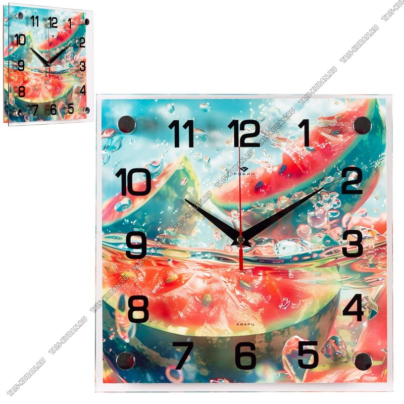 Часы (стекло/ДВП) (25х25см) "Сочные арбузы" (10)