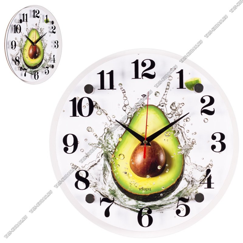 Часы (стекло/ДВП) круглые d30см "Авокадо" (10)