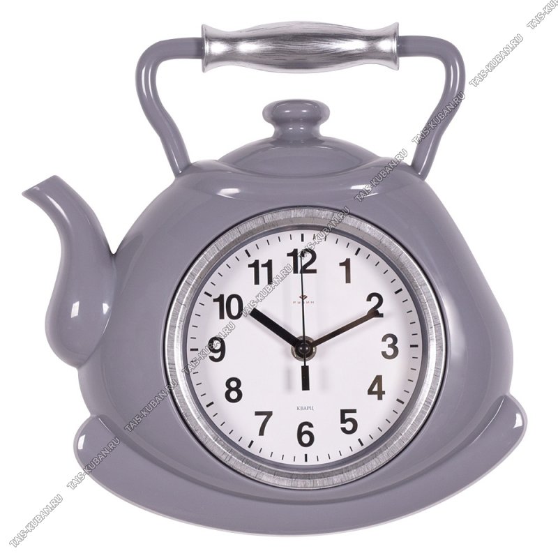 Часы (пластик+стекло) фигурные (27х28см) "Чайник" серые