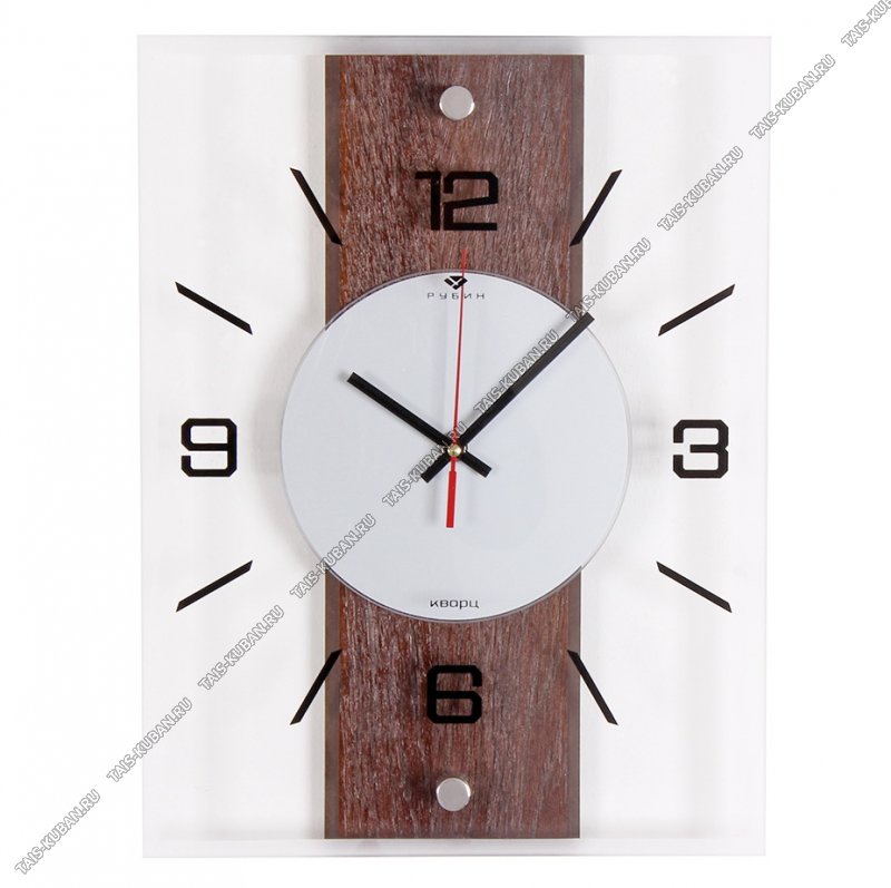 Часы (стекло/МДФ) прямоугольные (37х29см) "Классика" прозрач+темное дерево