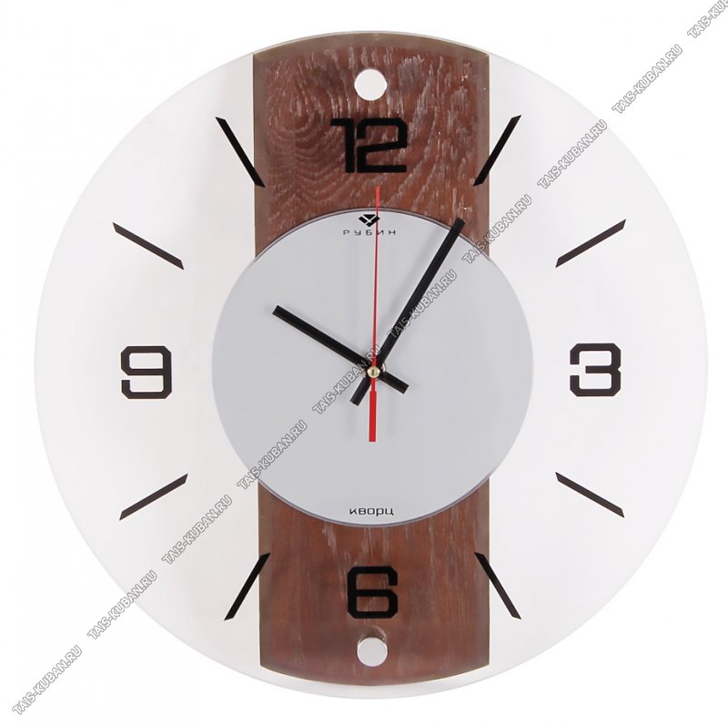 Часы (стекло/МДФ) круглые d34см Часы (стекло/МДФ) круглые d34см "Классика" прозрач+дерево темное