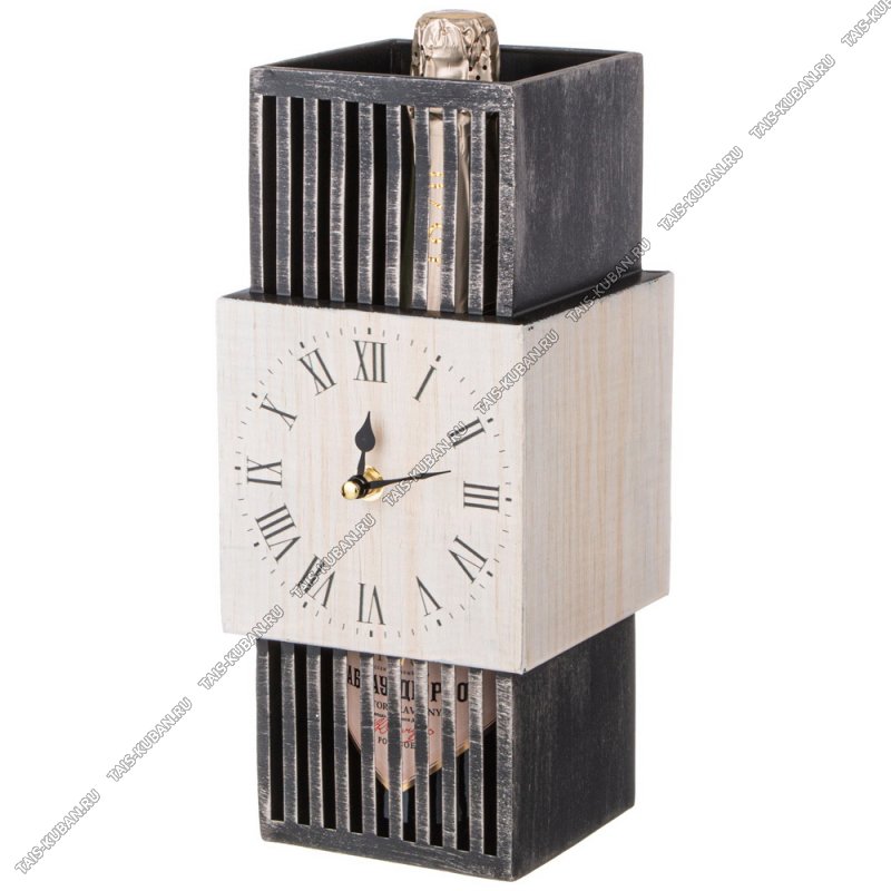 Подставка под бутылку - Часы настольные (15х13см) Серо/белый, металл/МДФ