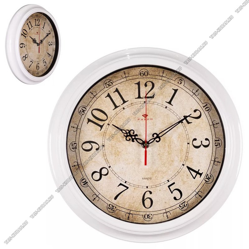 Часы (стекло/пластик) круг.d21см Часы (стекло/пластик) круг.d21см "Классик" белый корпус, п/у (10)