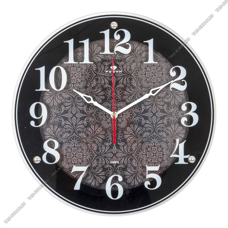 Часы (стекло/пластик) круг.d40см "Классика" черные+узор п/у (10)