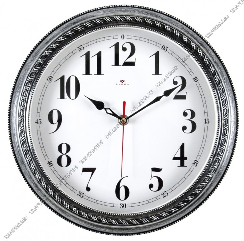 Часы (стекло/пластик) круг.d28,5см Часы (стекло/пластик) круг.d28,5см "Классика" корпус серебро с орнамент,п/у (10)