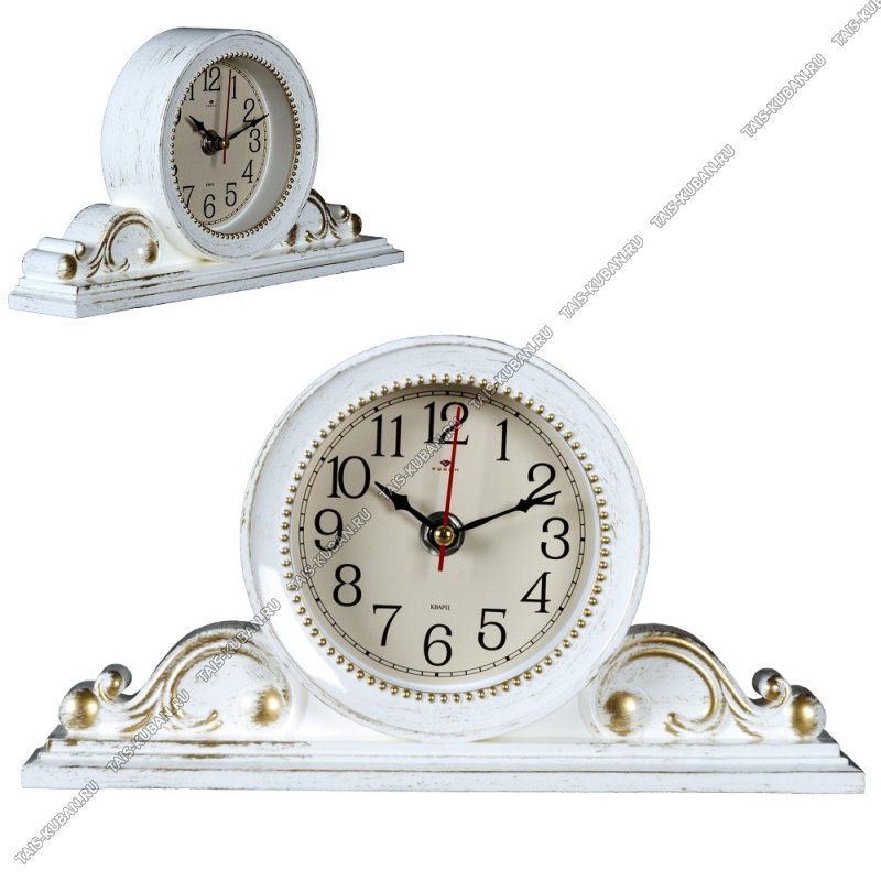 Часы настол. (стекло/пластик) (26х14см) "Классика" бел.золото,рельефн.подставка,п/у (10)