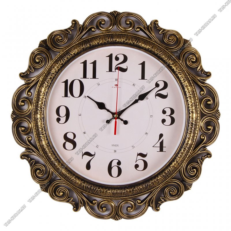 Часы (пластик) кругл.d40,5см Часы (пластик) кругл.d40,5см "Ажурные" корп.п/бронзу,с орнам.,п/у (5)