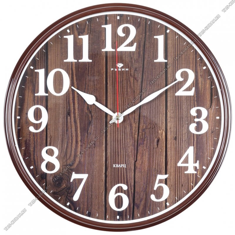 Часы (стекло/пластик) кругл.d29см "Эко/Деревяные доски" корич.корпус, п/у (10)