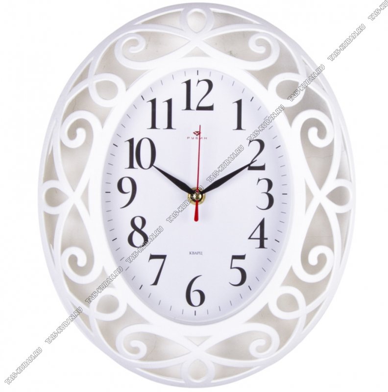 Часы (стекло/пластик) овал (31х26см) "Завитки" корпус резн.,белый, п/у (10)