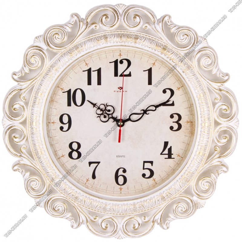 Часы (пластик) кругл.d40,5см "Ажурные" корп.резной,белый с золотом, п/у (5)