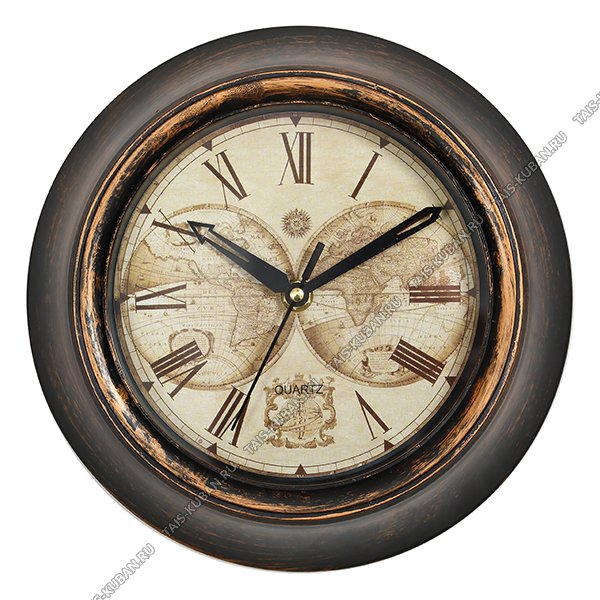 Часы (пластик) круг.d23см Часы (пластик) круг.d23см "Карта мира" коричнев.п/дерево (20)