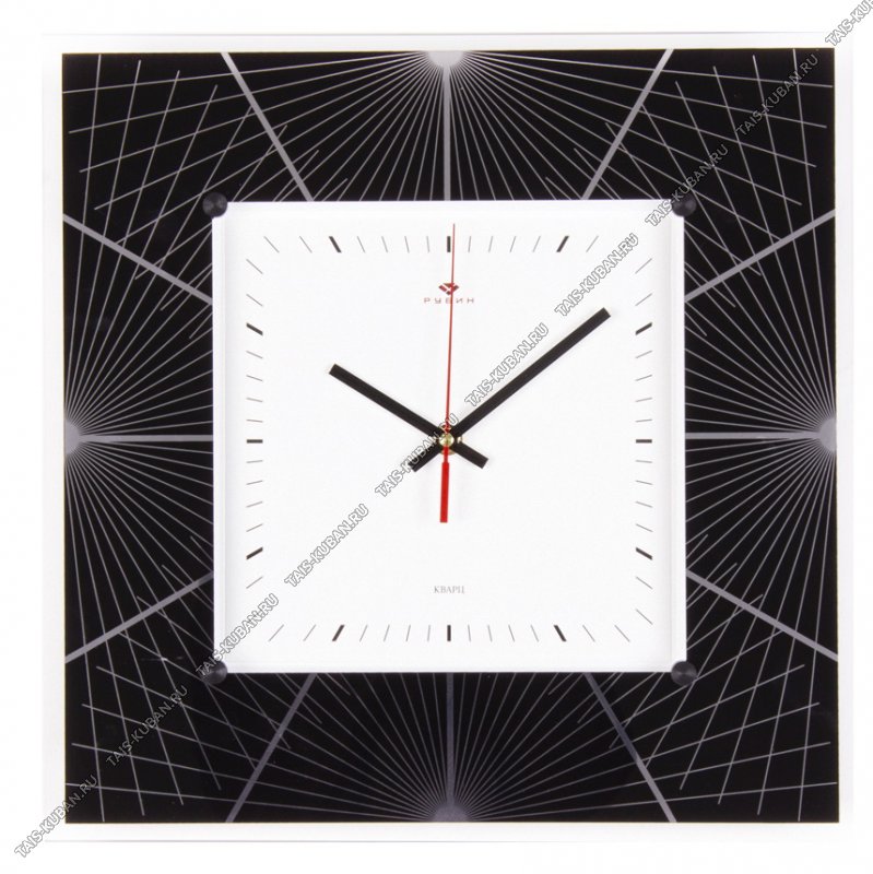 Часы (стекло/пластик) квадр.(35х35см) Часы (стекло/пластик) квадр.(35х35см) "Геометрия" черно-белый п/у (10)