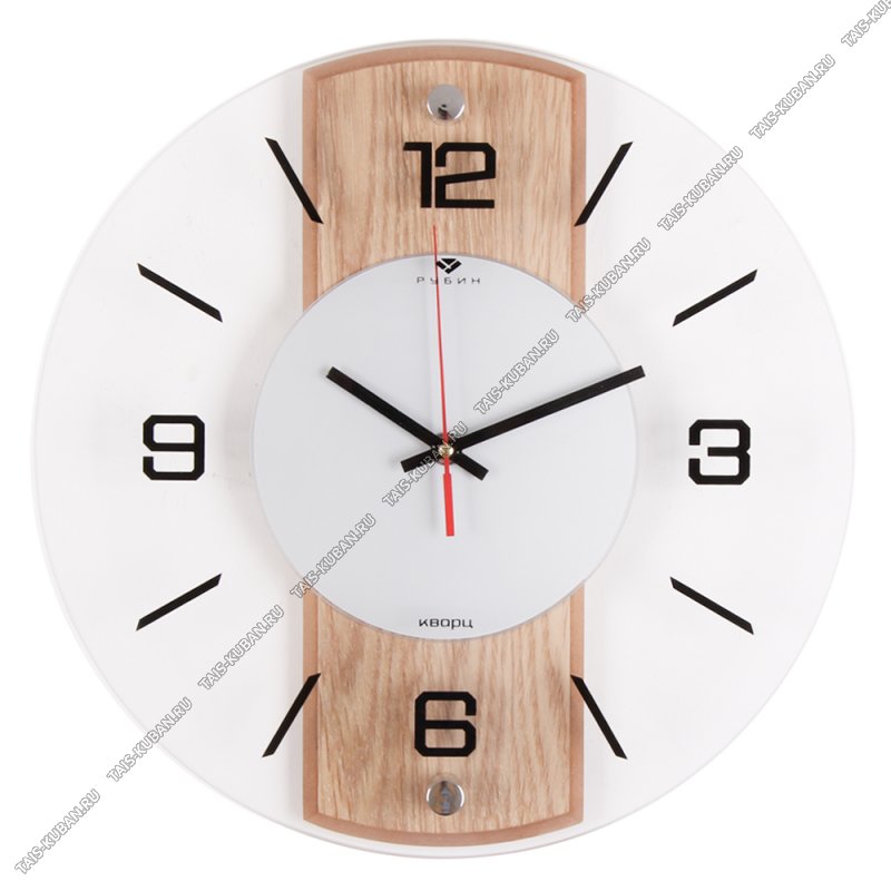 Часы (стекло/МДФ) круг.d34см Часы (стекло/МДФ) круг.d34см "Классика" прозрач+дерево свет п/у (10)