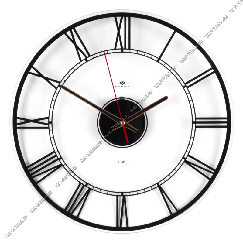 Часы (стекло/пластик) кругл.d39см "Прозрачные/Римские цифры" черные