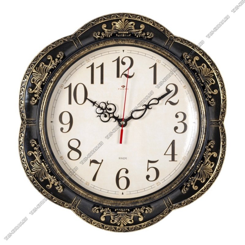 Часы (пластик) кругл.d35см "Барокко" черн+золото, п/у (10)
