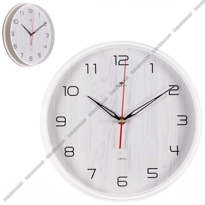 Часы (стекло/пластик) круг.d21см Часы (стекло/пластик) круг.d21см "Классика" широкий белый корпус, круп.цифры п/у (10)