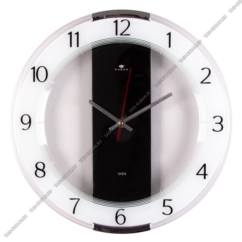 Часы (стекло/пластик) круг.d40см Часы (стекло/пластик) круг.d40см "Полоска" белые,круп.цифры п/у (10)