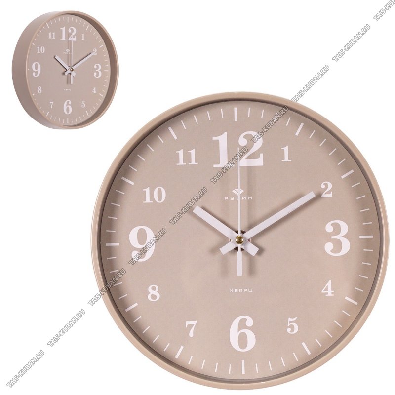 Часы (пластик/стекло) круглые d19,5 "Бежевые" (10)