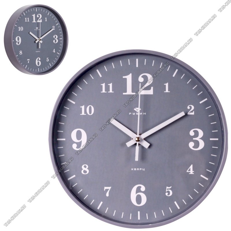 Часы (пластик/стекло) круглые d19,5 "Серые" (10)