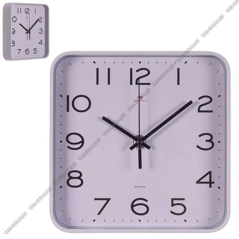 Часы (пластик/стекло) квадратные (19х19см) Часы (пластик/стекло) квадратные (19х19см) "Классика" серый корпус (10)