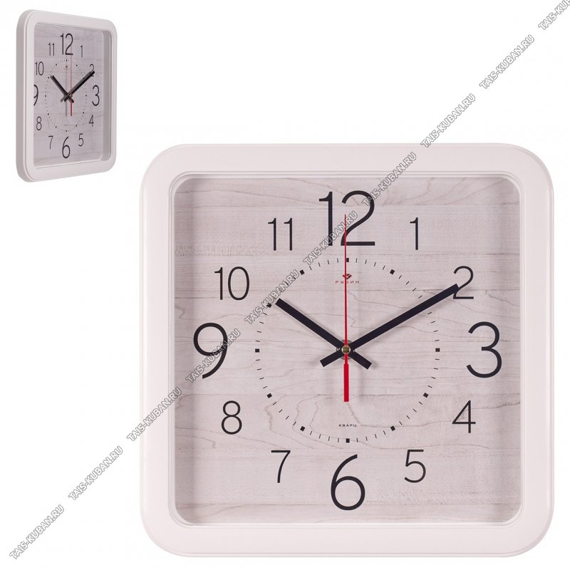 Часы (пластик/стекло) квадратные (29х29см) Часы (пластик/стекло) квадратные (29х29см) "Текстура дерева" белый корпус (10)