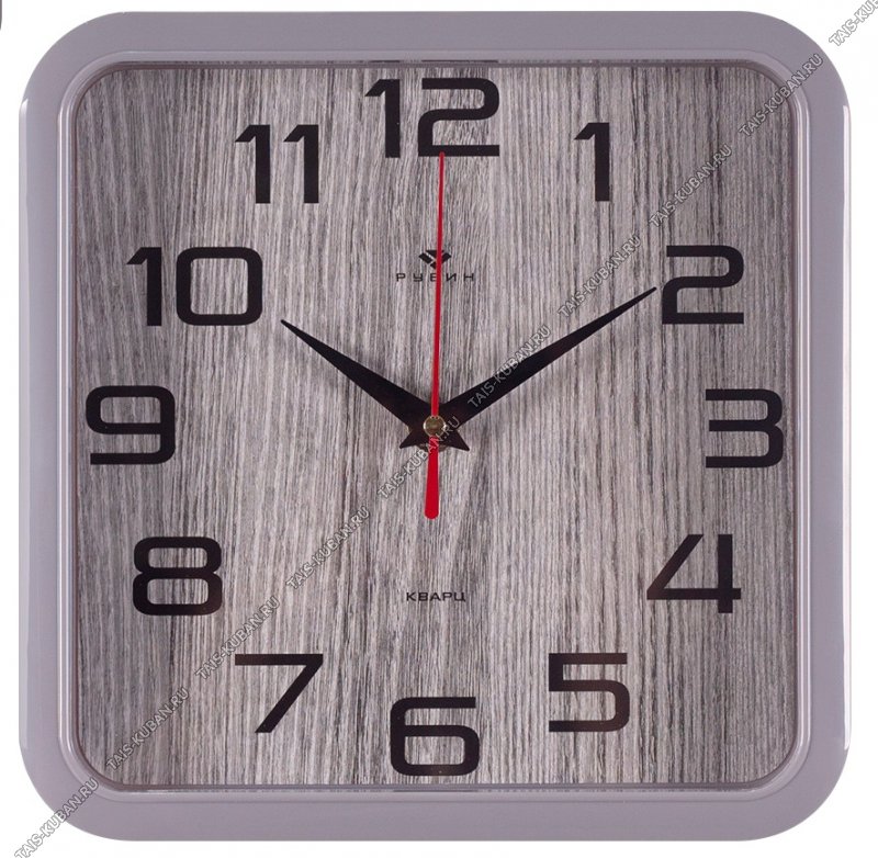 Часы (стекло/пластик) квадрат (22х22см) "Фактура дерево" серые