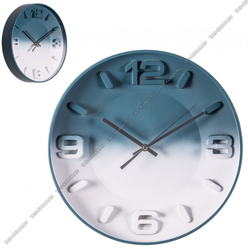 Часы (стекло/пластик) круглые d34см "Омбре/Сине-белое"