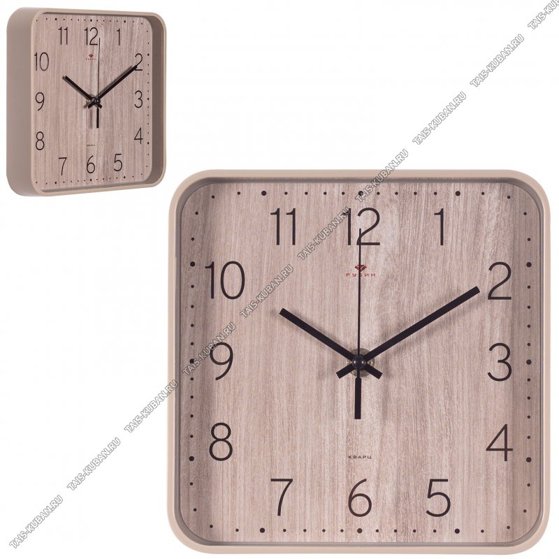 Часы (пластик/стекло) квадратные (19х19см) Часы (пластик/стекло) квадратные (19х19см) "Текстура дерева" бежевый корпус